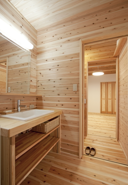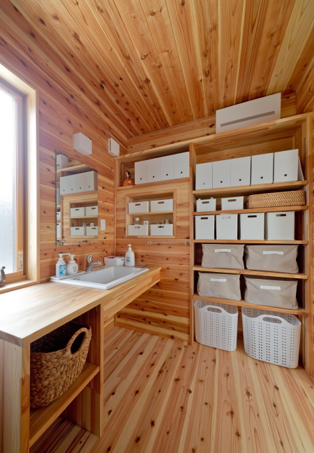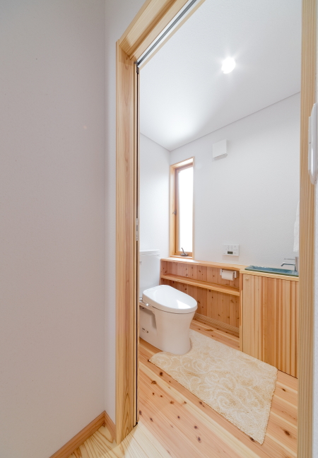 浴室や、洗面所、トイレのような水回りにも、木を取り入れることで、リラックスできる空間を演出。自然素材ならではの心地よさを感じながら、一日の疲れを癒すバスタイムを作りましょう。