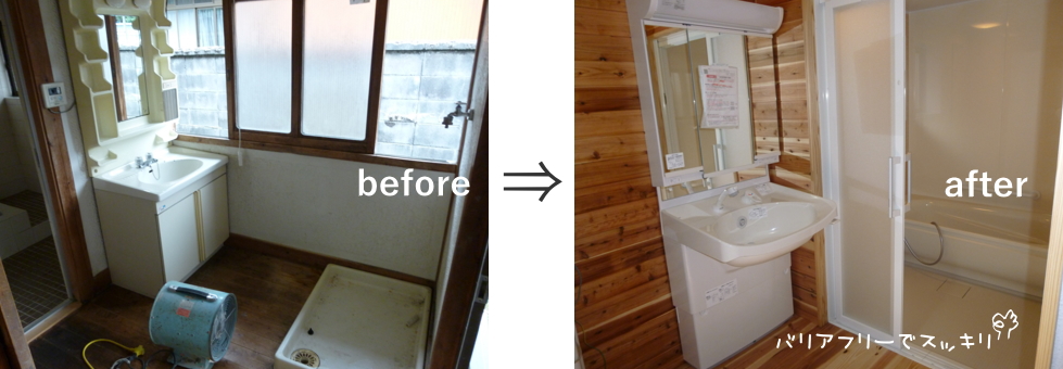 Livingの床を無垢に変え、洗面所やお風呂をリフォームするだけでも、スッキリしますね。