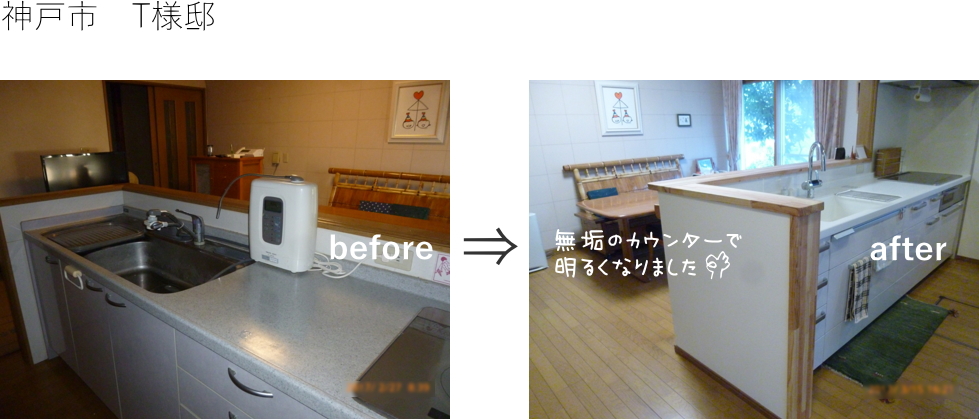 キッチンカウンターと流し台を変えただけですが、明るくなりましたね。