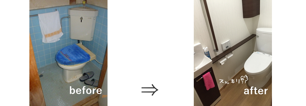 タイルからフローリングへ収納付手洗いも設置しました。トイレもスッキリ!